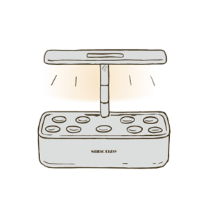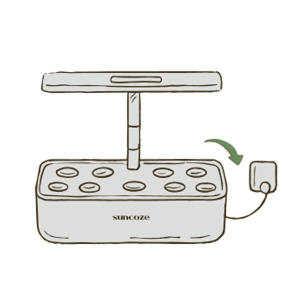 Turn on the grow light. Adjust the lamp height as your plants grow to give them the light they need.