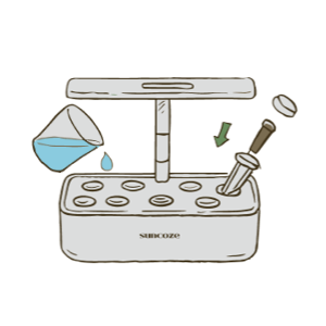 Insert the seed pods into the grow deck. Add water and A & B Plant Food through the water inlet.